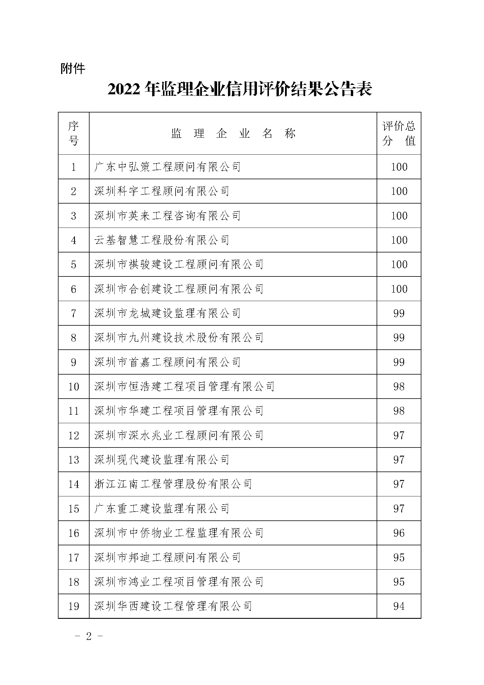 转发深圳市监理工程师协会2022年监理企业信用评价结果公告