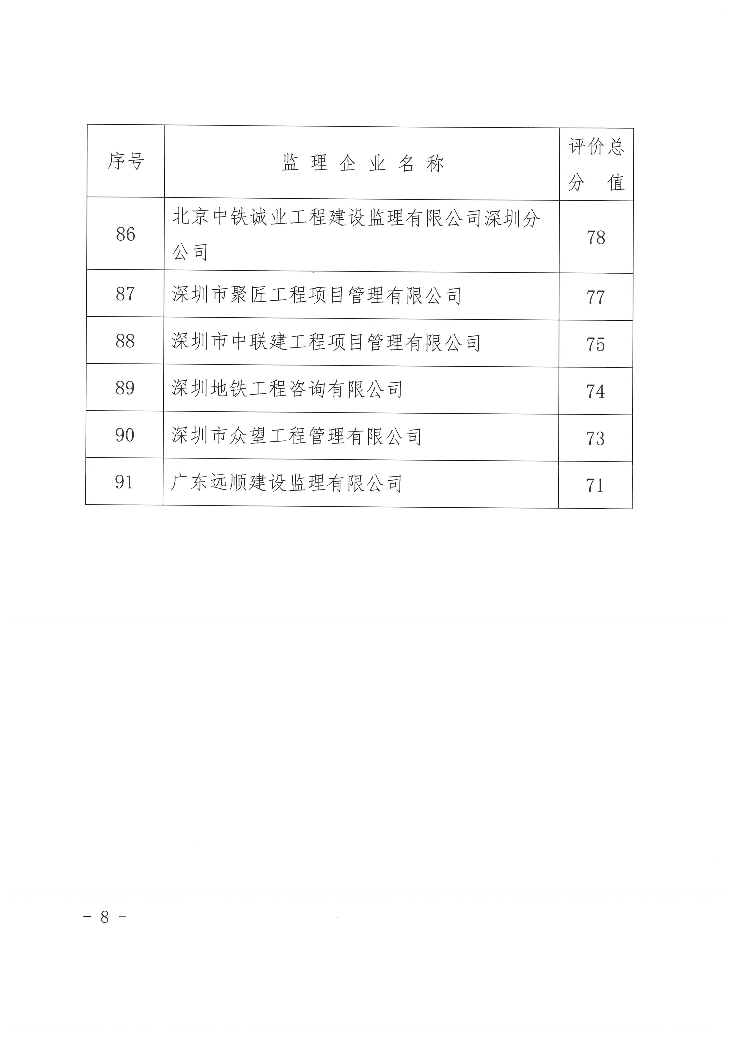 转发深圳市监理工程师协会2022年监理企业信用评价结果公告